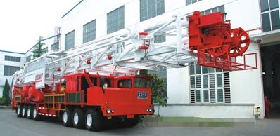 ZJ40 truck mounted drilling rig is the biggest light duty self- propelled truck-mounted drilling equipment. Several patent technologies and new technologies are used in the unit. Mature and reliable compound system for double engine is used. Compound gear box with unique design is of reliable driving performance and reasonable load distribution. Auxiliary brake of drawworks is air control water cooling disc brake. 128' (39m) mast and chassis frame is fabricated with special material and structure to ensure reliable strength and to reduce weight efficiently, and it provides great performance to satisfy the requirements for 13,120' (4000m) drilling operation, meanwhile, it also ensures the traveling efficiency and performance.